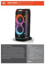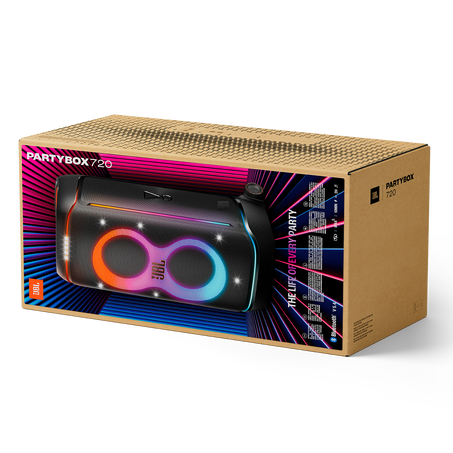 JBL PartyBox 720 برای کسایی ساخته شده که به دنبال یک اسپیکر مهمانی با صدای حرفهای، باتری قدرتمند و افکتهای نوری جذاب هستن. باتریهای لیتیوم-یون قابل تعویضش این امکان رو میدن که بدون نیاز به برق مستقیم ساعتها موزیک پخش بشه.